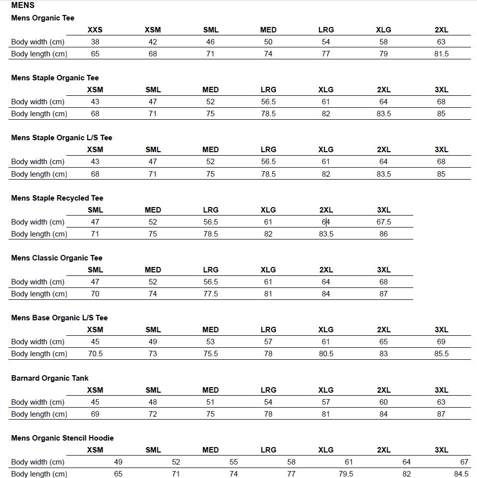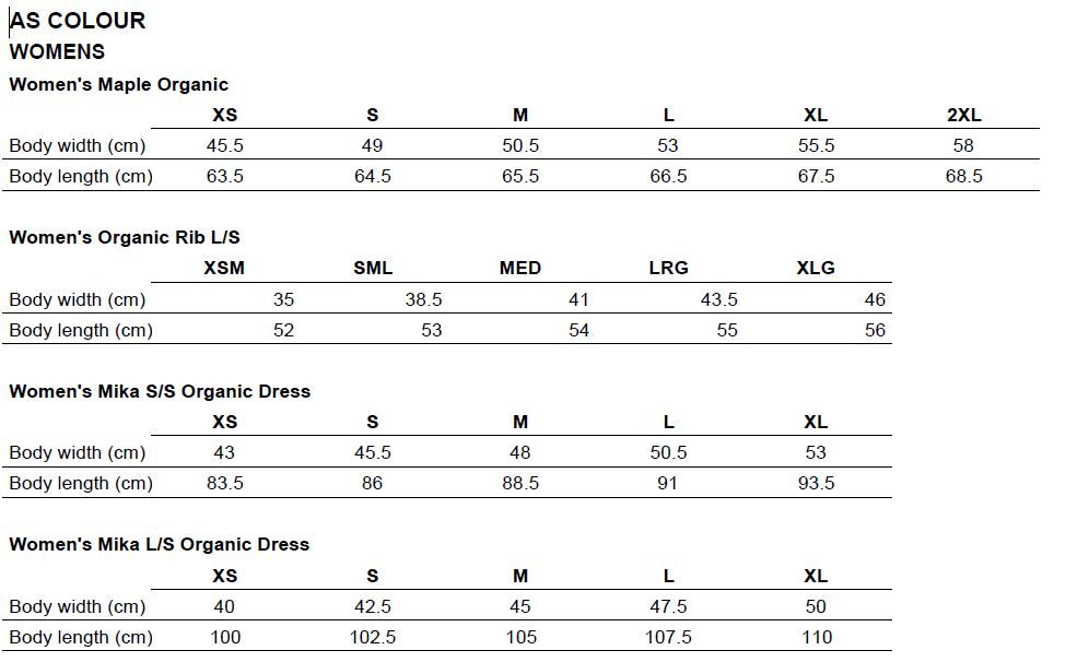 NOTE: Garment colours will vary to what you see on your screen.